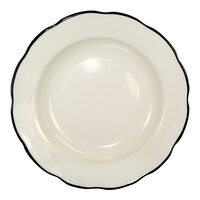 International Tableware Sydney 9 1/8" Ivory (American White) Scalloped Edge Stoneware Plate with Black Rim - 24/Case