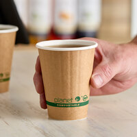 Stalk Market Planet+ 12 oz. Double Wall PLA-Coated Kraft Compostable Paper Hot Cup - 1,000/Case