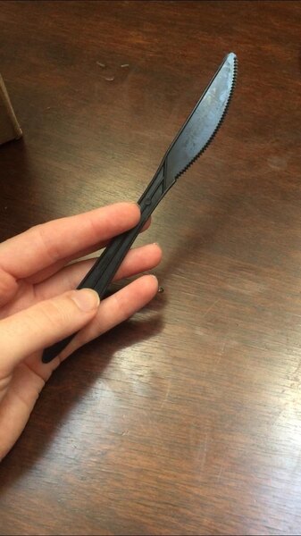 Very sturdy plastic knives. The quality and price are both great and we use them daily on our outside deck service area. Very rarely have one break.