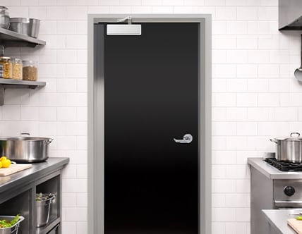 Provide a clear, easy-to-navigate separation between your front-of-house and back-of-house operations by installing traffic doors.