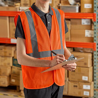5 Sizes2 ColorsLavex Class 2 Orange High Visibility Safety Vest with Zipper Closure - 50/Case