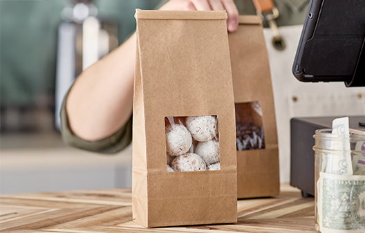 Our hinged take-out containers keep your donuts safe and secure during transport. We also carry donut bags that allow your customers to take their favorite treats on the go. Wax paper bags are perfect for keeping grease from seeping through bags and creating an unsightly presentation.