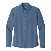 2 OptionsPort & Company LSP10 Women's Customizable Ink Blue Long Sleeve Denim Button-Down Shirt - LargeItem number39b288594
