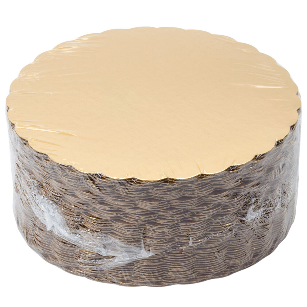 Whether serving or packaging a cake, the presentation is almost as important as how the cake tastes. This product features a laminated decorative gold coloring that ensures your creations stand out for a stunning appearance. Plus, it is made with sturdy, single-wall corrugated cardboard to provide ample support for even the heaviest of cakes.
