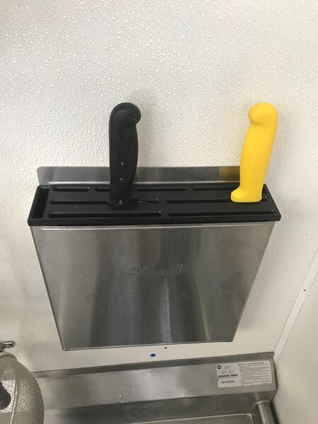Does what it's supposed to! Not good for really long knives but easy to install and clean and fits most. Greta budget option for a small operation.