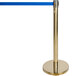 Aarco HB-7 Brass 40" Crowd Control / Guidance Stanchion with 84" Blue Retractable Belt
