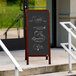 Display your most important announcements, specials, and menu updates with this eye-catching Aarco MA-3B 42" x 18" cherry a-frame sign board with black chalk board. In addition to an attractive solid cherry wood frame, the double-sided sign features a 14 1/4" x 33 3/4" black composition writing surface that serves as a perfect space for customizable messages that allow the personality of your business to shine through.