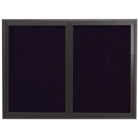 Aarco OADC4860IBA 48" x 60" Enclosed Hinged Locking 2 Door Bronze Anodized Aluminum Outdoor Lighted Message Center with Black Letter Board