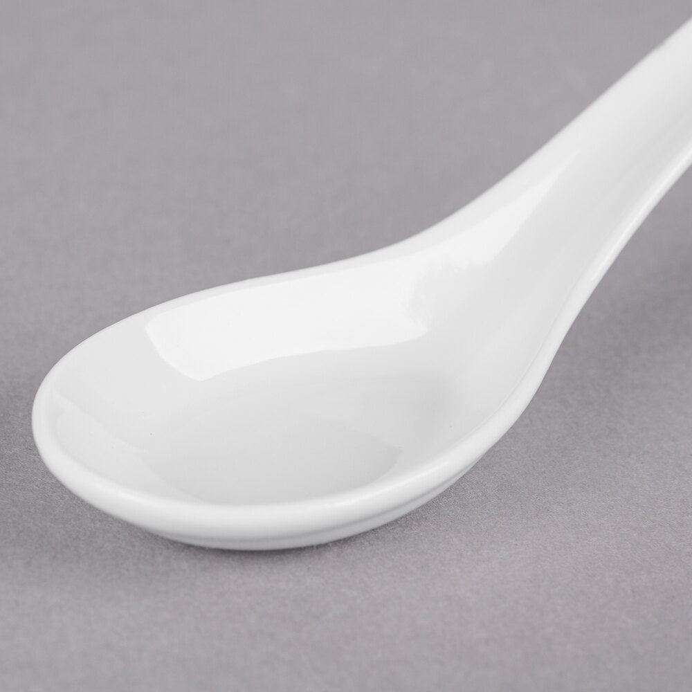 This spoon features a timeless, porcelain construction. This gives it a polished, professional feel perfect for your upscale Asian bistro, restaurant, or catered event.