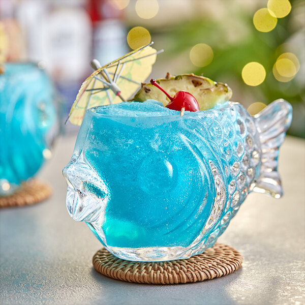 Finish off seasonal drink specials with a straw, and impress your patrons with an unforgettable presentation! Perfect for tropical themed events, the fish shape of this glass will make a splash in any venue and is ideal for themed restaurants and catered events, parties, and beach bars.