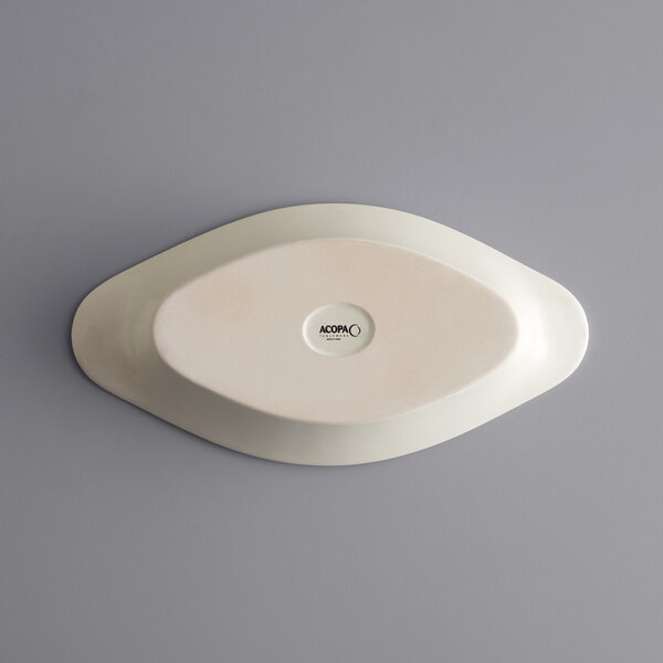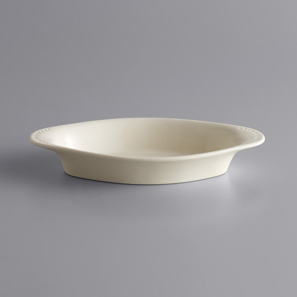 Acopa 15 oz. Ivory (American White) Oval Stoneware Rarebit is very durable and nice looking , we use them everyday in our microwave and conveyor oven.