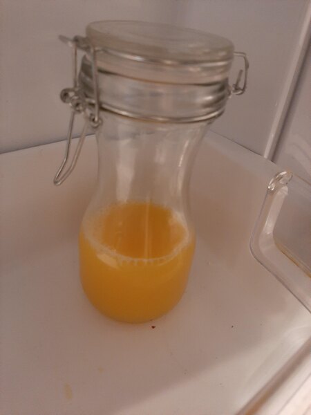 These cute bottles are perfect for water or juice and they seal tight. Lid opens up fully and can be removed, so it’s easy to clean. For transport and storage, we use the Nobel Glass Rack with four blue risers.