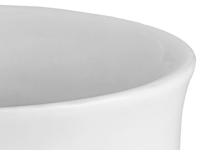 Thanks to its gentle curves and bright white coloring, this cup elegantly presents your finest sake offerings. This cup seamlessly blends with other shapes, patterns, and textures in the same body color for a complete tabletop display.