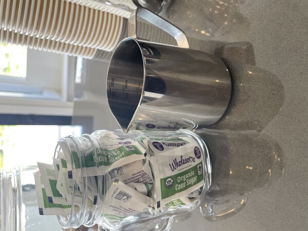 This size pitcher is good to have for steaming small amounts of milk. We use these for cortados and our oatmeal bowls milk. The measurements are nice to have for accuracy.