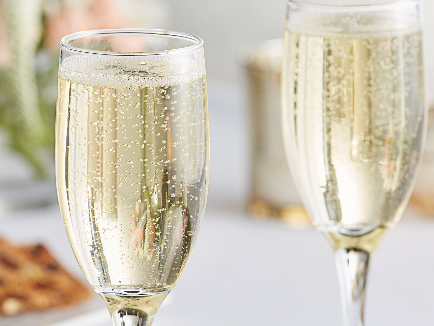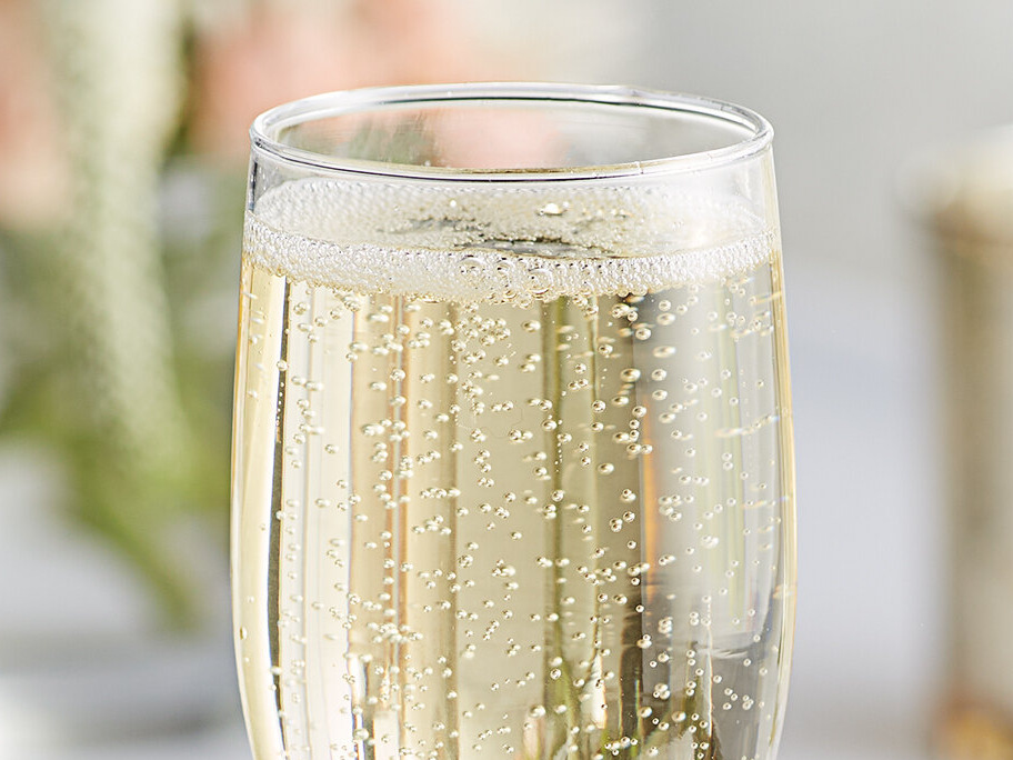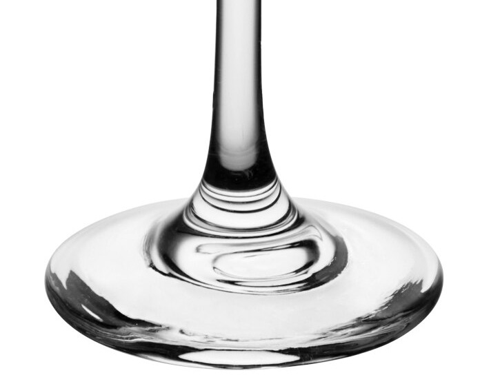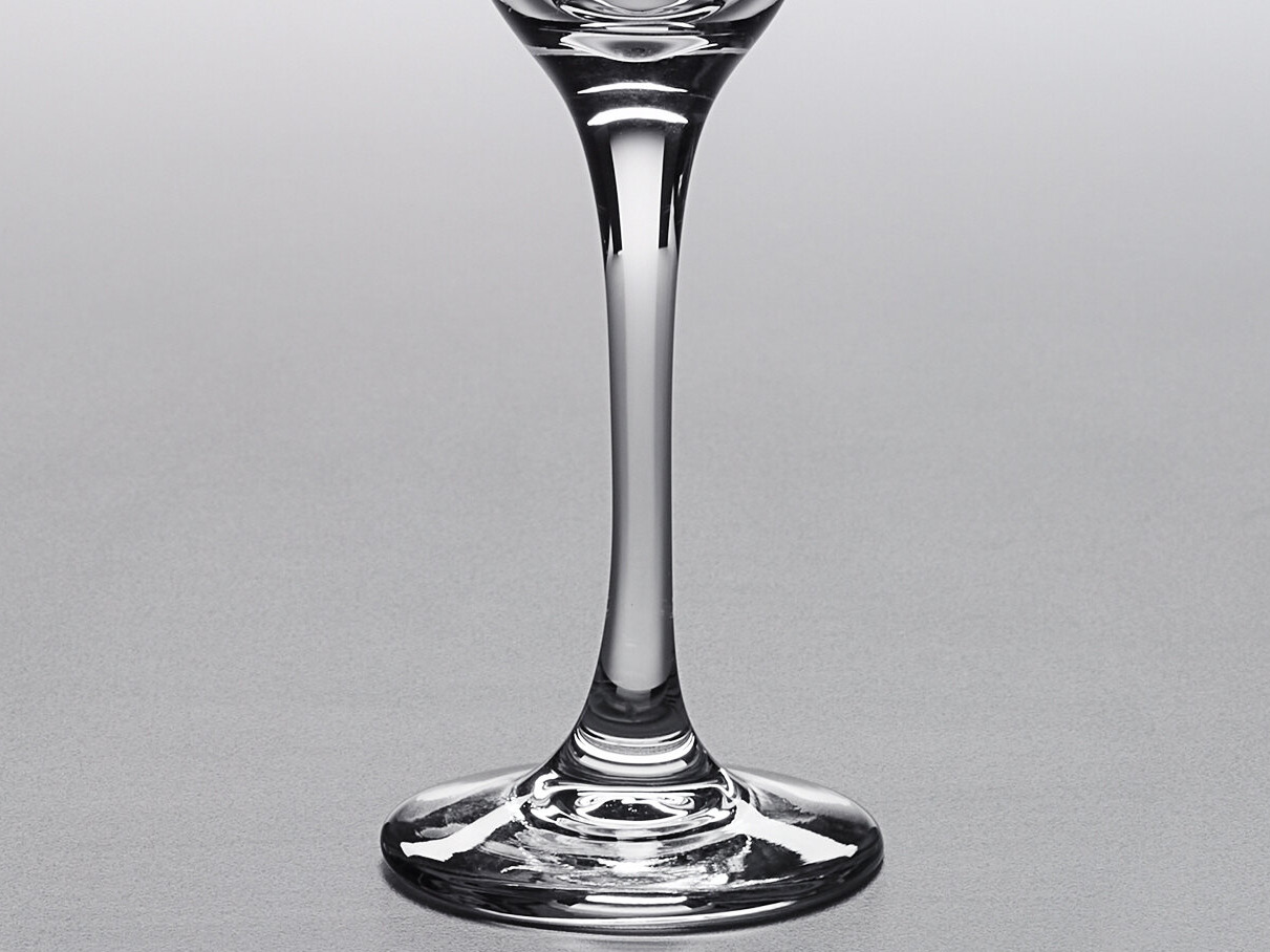 This flute glass easily remains upright on trays, tabletops, and counters thanks to its balanced construction.