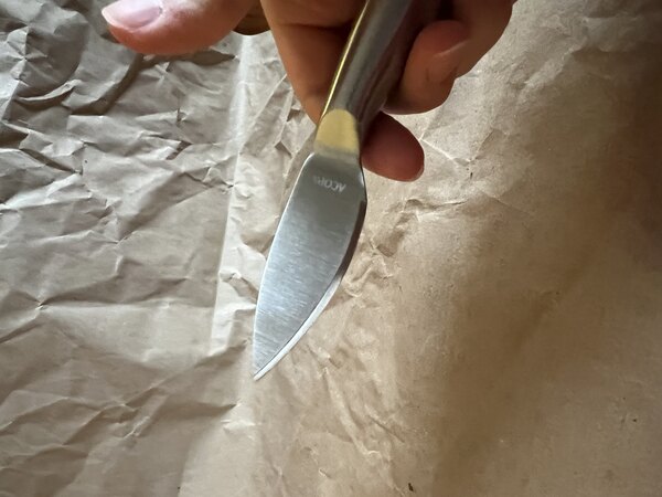 "Acopa cheese spade is stainless steel, easy to hold, use and store. The blade is sharp and works beautifully on a cheese board. Recommended."