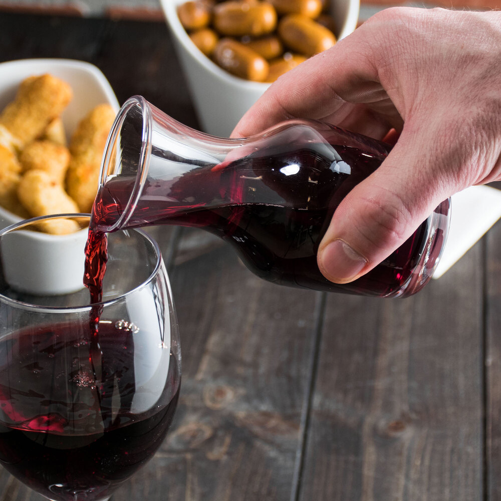 This carafe's crystal-clear glass construction showcases your most popular wines and juices. It also lets servers know at a glance if the beverage needs to be refilled to help stay on top of service.