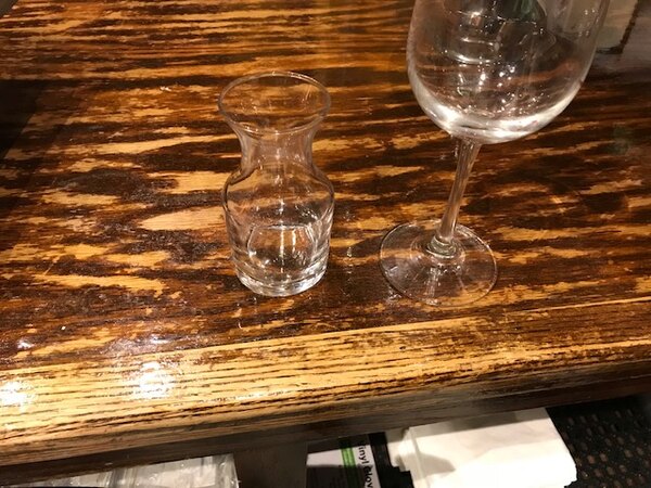 Classy way to present ordered wine at the table. Also a great way to assure that the correct amount of portioned wine is served. Will definitely order again.