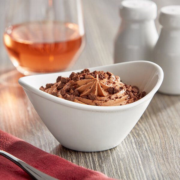 Modern, sleek, and stylish, this Acopa 7 oz. bright white oval stoneware coupe bowl is the perfect backdrop for your patrons' favorite foods! With an attractive coupe design that adds a degree of sophistication, it will impress guests and put you a step above your competition. Create an eye-catching and dynamic display at your restaurant, hotel, or catered event with this Acopa bowl!