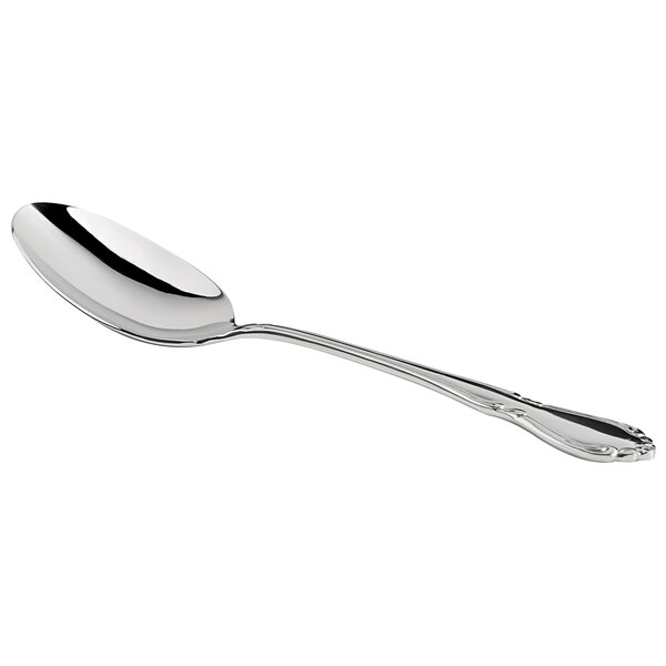 Featuring a subtle scroll pattern and curved soft edges, this tablespoon / serving spoon is constructed to fit comfortably in your patrons' hands.