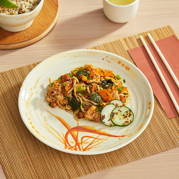 By ordering this Acopa sample, you're able to touch and see it in person to ensure it meets all the unique requirements of your foodservice space before committing to the purchase of any full case from the Acopa Brassia line. Crafted for daily use, this plate is both visually appealing and built to withstand the demands of a bustling dining environment. The Acopa Brassia collection draws inspiration from the brassia orchid, bringing the grace of traditional Asian aesthetics to your tabletop. Complete your table setting with pieces from the Acopa Brassia collection to provide your guests with a dining experience that beautifully merges style with functionality.