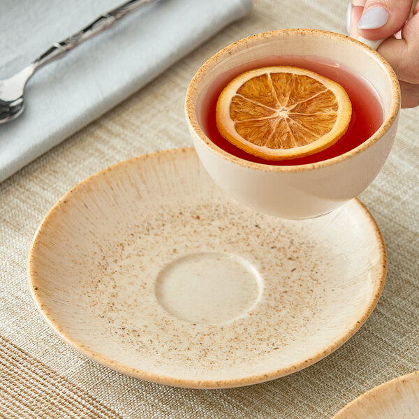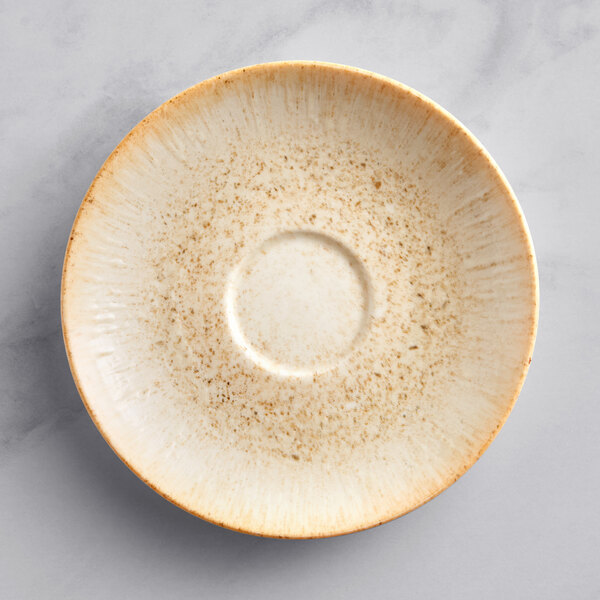 Crafted from fully vitrified porcelain, this saucer offers exceptional durability, ensuring long-lasting use in your establishment. The sandy beige color and weathered design provide a timeless coastal aesthetic, adding a touch of charm to your tabletop settings. Designed to protect tabletops from spills and drips, this porcelain saucer helps maintain cleanliness and organization in your dining area. Whether you're serving signature hot lattes, tea, or hot chocolate, the Acopa Cape saucer is a versatile and practical addition to your servingware collection.