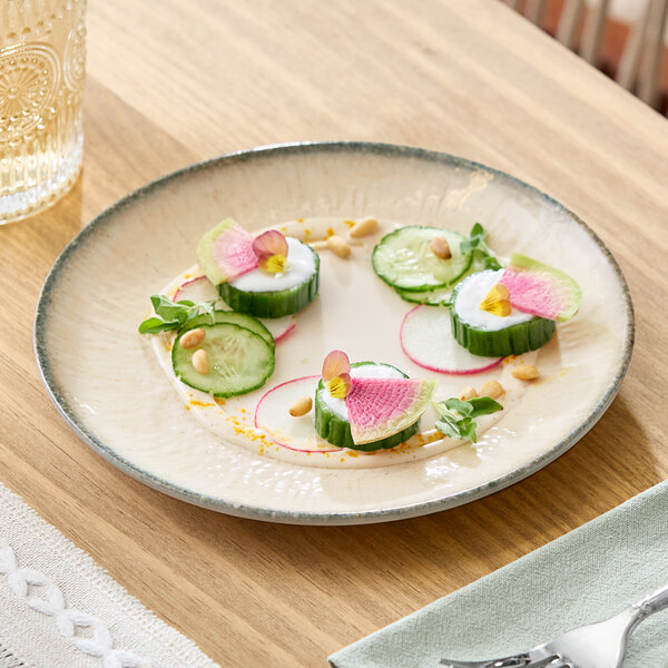 Crafted from fully vitrified porcelain, this plate is built to withstand the rigors of commercial use, ensuring long-lasting durability. The earthy gray color and weathered design of the plate lend a timeless coastal aesthetic to your tabletop presentation, adding a touch of elegance to any dish served. Ideal for upscale restaurants, diners, and cafes, this plate is perfect for serving salads, sandwiches, and desserts with style and sophistication.