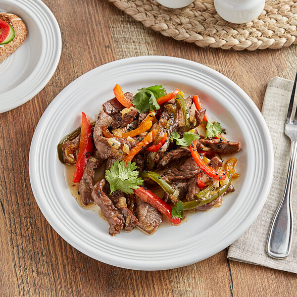 Bring some zest to the dinner table with this Acopa Capri 9" coconut white stoneware plate.