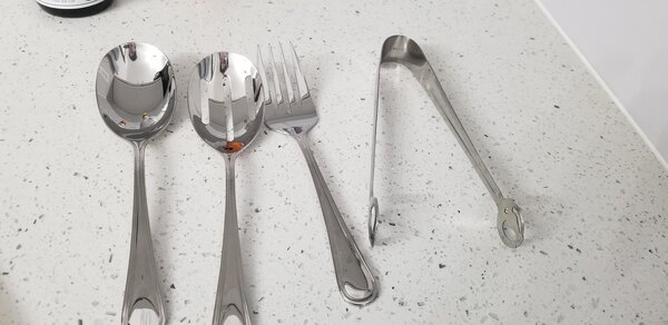 These serving utensils are great and look very elegant when on the table. They are perfect for larger gatherings and will match to just about any silverware that has a similar color. They are heavier so you do not have to worry about them moving around the table. They will stay put, do their job and look great!
