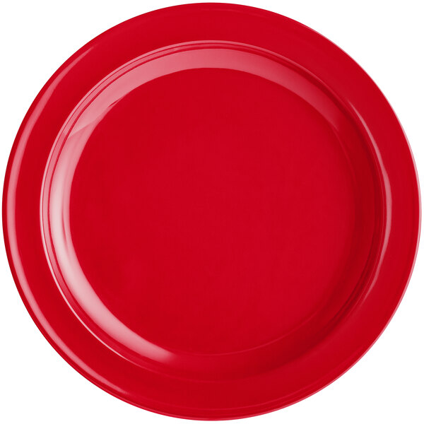 This plate is ideal for serving appetizers, sides, and desserts. It is designed with a narrow rim that expertly frames each dish and helps prevent messes or spills by keeping foods and sauces contained on the plate! Plus, its beautiful red color will catch the attention of your patrons and complement your signature foods, allowing them to seemingly pop off the table.