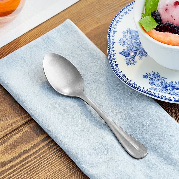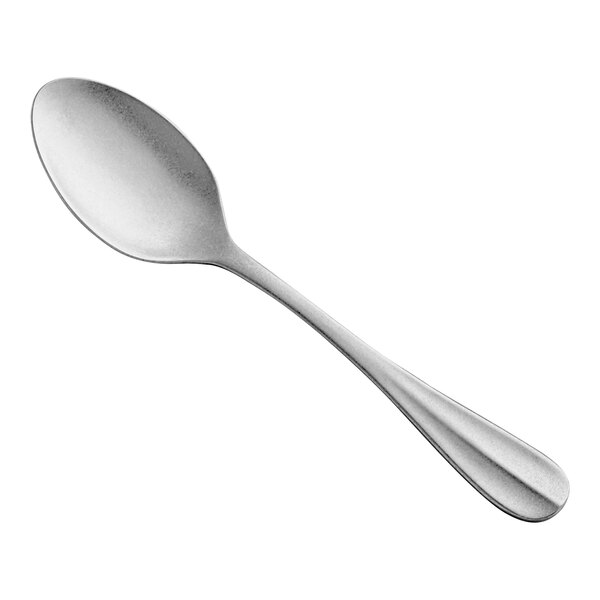 Enhance the dining experience of your patrons with the Acopa Josette 6" 18/8 distressed stainless steel extra heavy weight teaspoon.