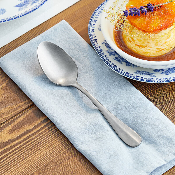 Acopa Josette 7" 18/8 Distressed Stainless Steel Extra Heavy Weight Dinner / Dessert Spoon - 12/Case