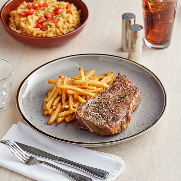 These are solid plates. The speckles of vanilla and the gold rim looks quite nice when compared against the white plates that most people use. The plates are sturdy as well and don't chip or break easily. The edge / rim of the plates does not rise as high as I thought it did, make sure to look at measurements / photos.