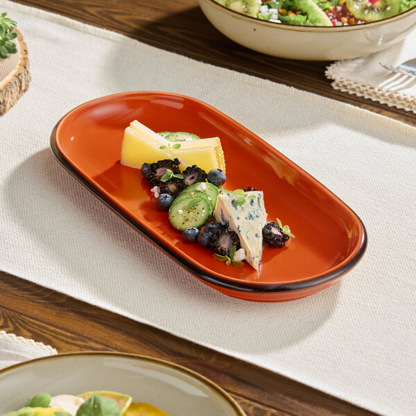 Featuring a warm Sedona orange color, this platter is complemented by chestnut brown speckles. It provides both durability and style, making it the ideal backdrop for your delicious creations. This piece is unique enough to be used as a standalone dish, or play up your tabletop and mix it with other Keystone pieces of like or varying colors. Use this platter to serve appetizers and hors d'oeuvres in style.