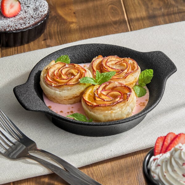 This item can withstand high heat applications and is safe for oven use in food service.