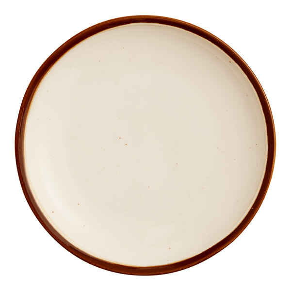 For the perfect combination of rustic style and elegance, introduce this Acopa Keystone 6" vanilla bean porcelain coupe plate.