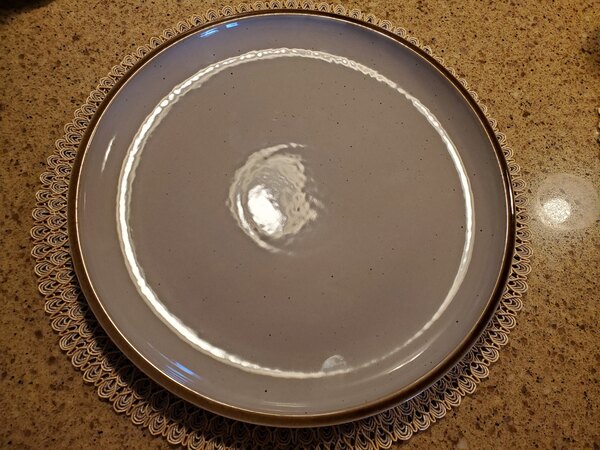 These are solid plates. The speckles of vanilla and the gold rim looks quite nice when compared against the white plates that most people use. The plates are sturdy as well and don't chip or break easily. The edge / rim of the plates does not rise as high as I thought it did, make sure to look at measurements / photos.