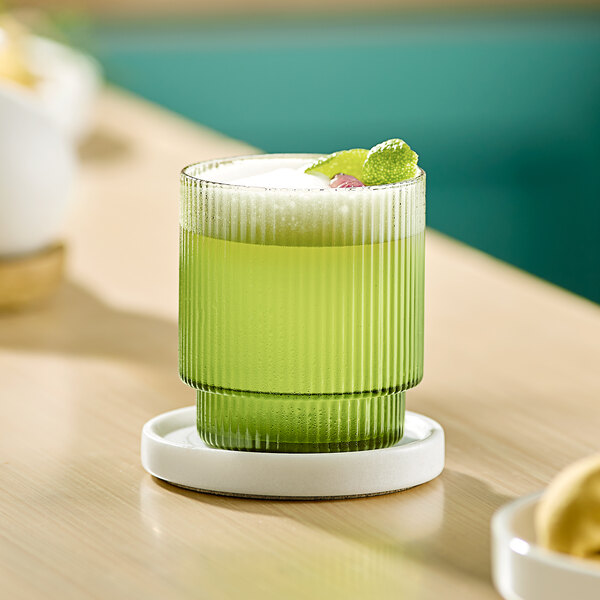 This glass is ideal for serving whiskey and other fine spirits neat, on the rocks, or in cocktails. Its sleek and modern design features subtle ribbed lines that are sure to catch the eye of your guests. The textured surface of the glass provides a tactile feel in hand. The glass's rich green color will add an enticing look to your tabletop displays!