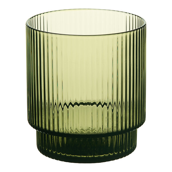 Acopa Lore 3 1/2" Green Glass Ribbed Tealight / Votive Holder - 12/Case