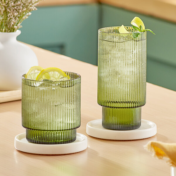 Add a trendy, minimalist touch to your beverage service with this Acopa Lore green rocks / old fashioned and highball glass set.