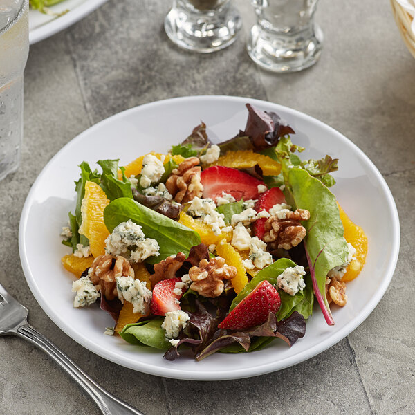 This plate's coupe rim provides a minimalist aesthetic that will naturally draw your customers' eyes towards the center of the plate to keep the focus on your culinary masterpieces. Plus, its white color provides the perfect backdrop to accentuate your fresh, vibrant foods as well as complements any style or color of table linens, dinnerware accessories, or table settings.