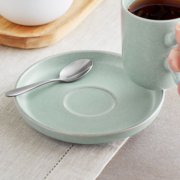 This saucer is crafted with a porcelain body that is built to last. It features a matte reactive glaze for an eye-catching yet natural color that will add a charming feel to any table setting.