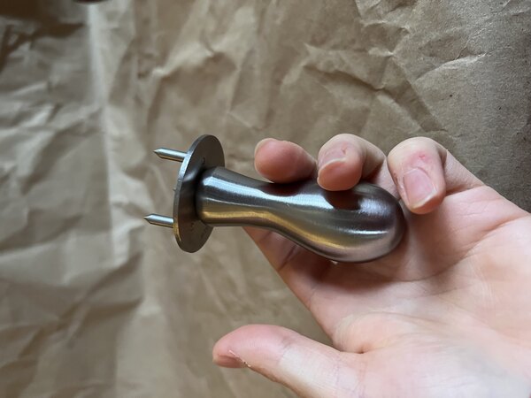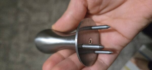 A stainless steel button with spikes that holds my hard cheeses in place while cutting also keeping everything nice and sanitary a nice pickup for parties