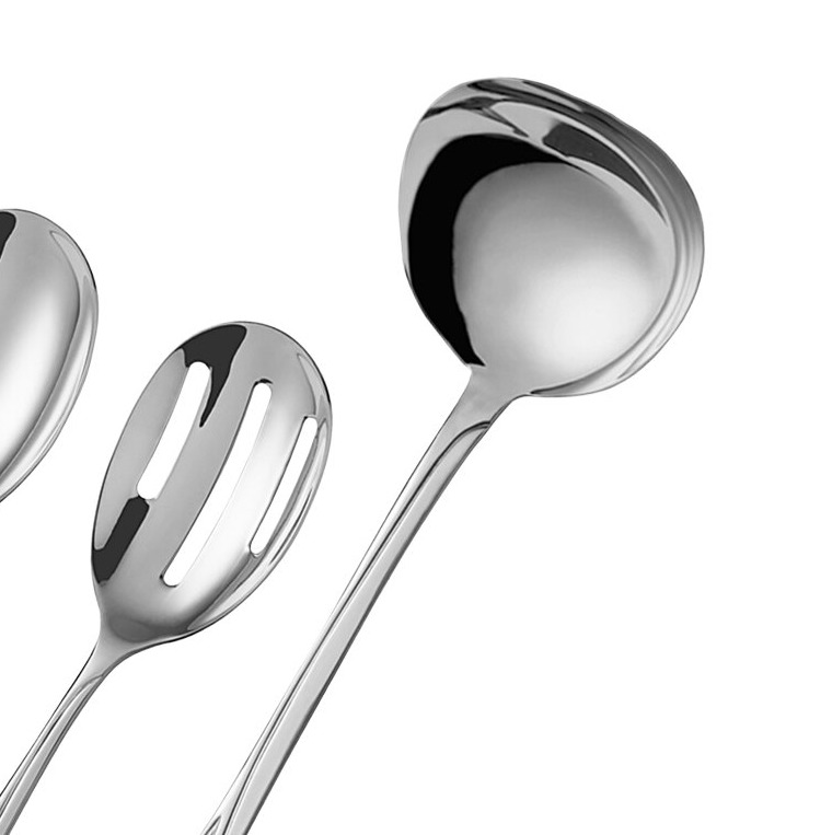 Perfect for serving signature dishes, sides, and desserts, this set is constructed from corrosion-resistant 18/8 stainless steel, which grants it durability and longevity. Each piece features a smooth handle with a stylish swirled pattern, and the hand-polished stainless steel creates an elegant mirror shine.