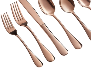 I love the color and the shape of this silverware set! The darker color is not what you typically see. It adds a bit of elegance even though it has a very simple look. The price is also unbeatable!