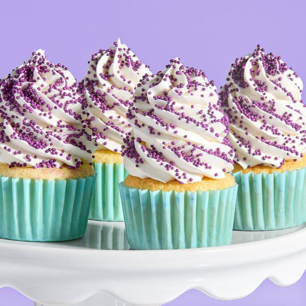 Fun and decorative, these purple-colored nonpareils enhance the overall presentation of any dessert, tempting your customers back for more. The vibrant purple color will pop against any backdrop, and they can easily be mixed with sweet frostings and other toppings or swirled around a cone of soft serve ice cream. Sprinkle these tiny confections into your signature cookie batter, atop a flavorful ice cream sundae, or use them to garnish frosted cupcakes.