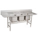 From the durable Spec Line Series, this Advance Tabco 94-23-60-36RL three compartment pot sink comes with two, 36" drainboards that provide ample space to perform every warewashing chore. The Advance Tabco 94-23-60-36RL Spec Series three compartment pot sink is made of rugged 14 gauge 304 series stainless steel to stand up to the toughest tasks in the busiest restaurant kitchens or industrial areas.