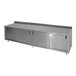 This 30" x 96" Advance Tabco CK-SS-308M enclosed base work table with 5" backsplash combines a durable work surface with concealed storage and a convenient fixed mid shelf to keep mixing bowls, containers, prep supplies or even small kitchen appliances close at hand!
