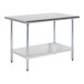 This 16-gauge, type 430 stainless steel worktable is a durable option for your commercial food prep area! It's perfect for completing all kinds of daily tasks including chopping up vegetables, pressing hamburger patties, and boxing up baked goods.