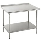 Advance Tabco FMS-246 24" x 72" 16 Gauge Stainless Steel Commercial Work Table with Undershelf and 1 1/2" Backsplash